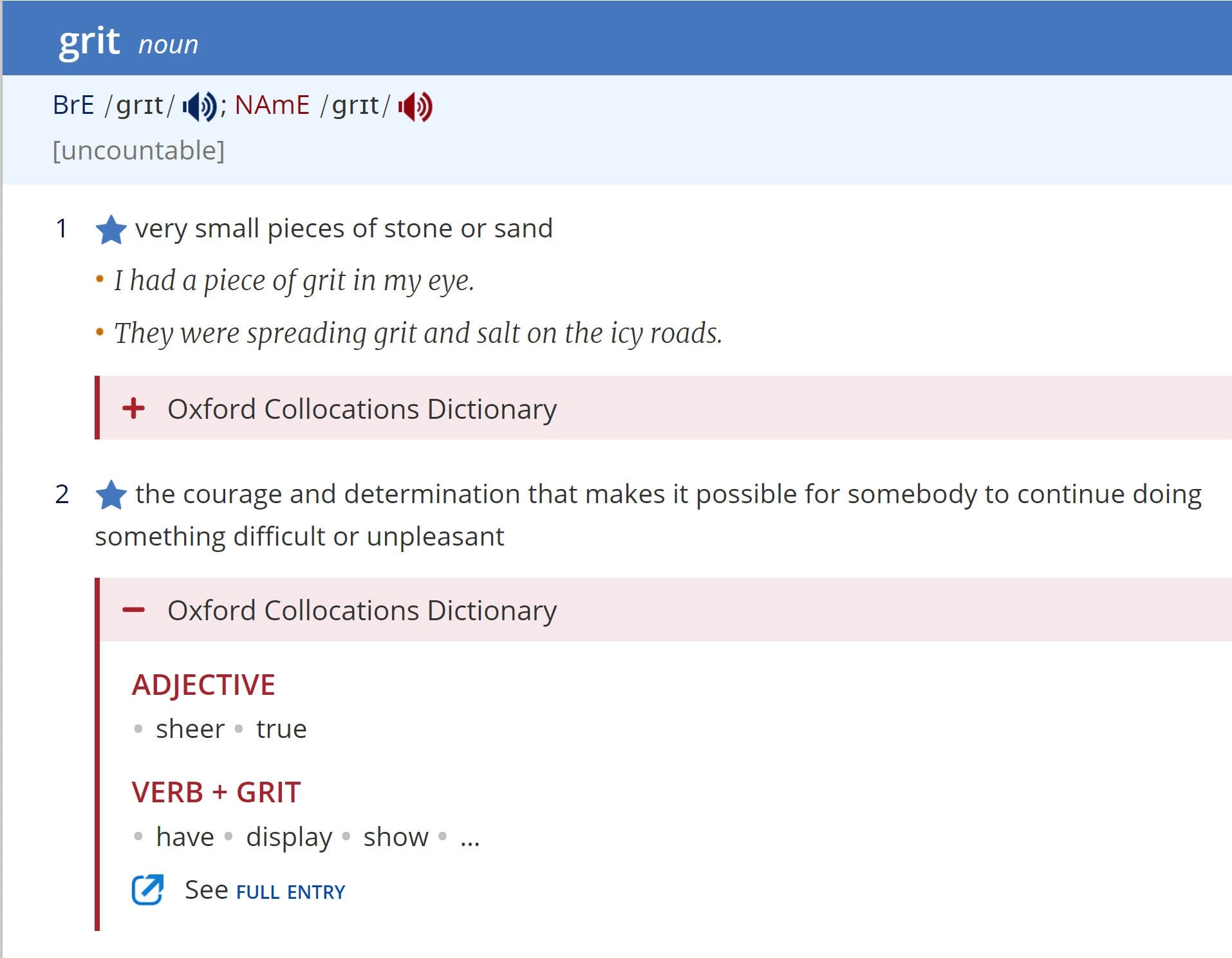 Read this extract from an English dictionary about the word ‘grit’. What does it mean?